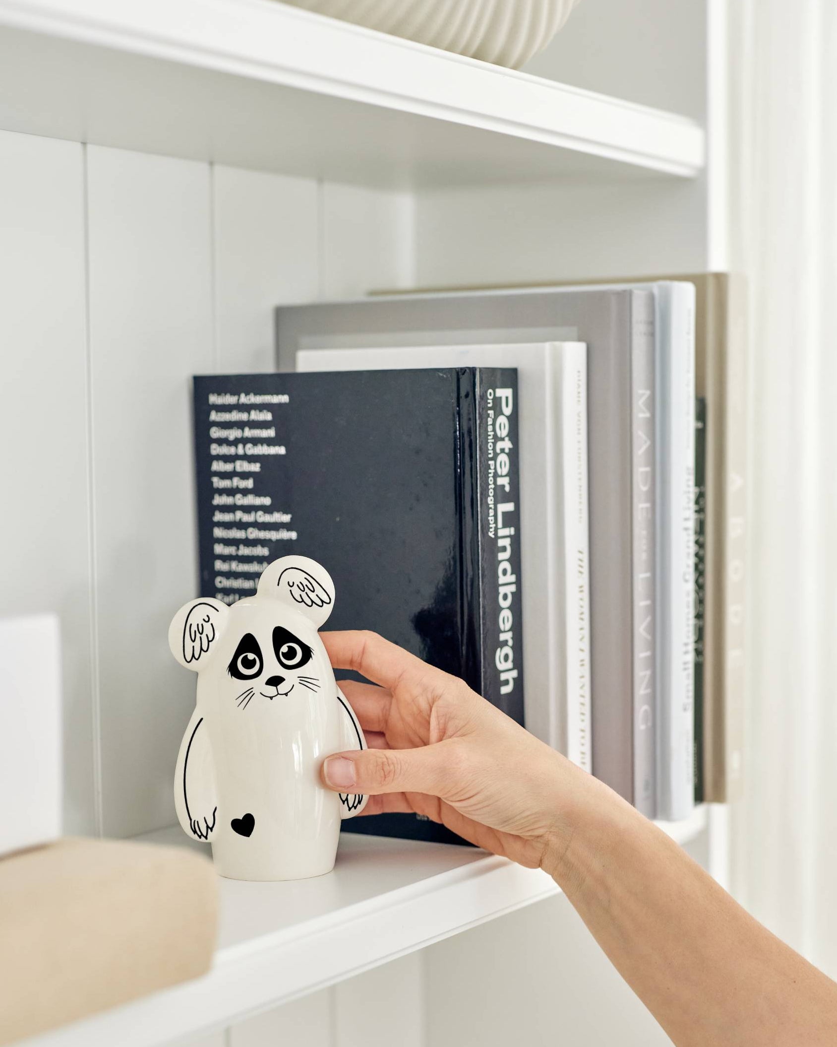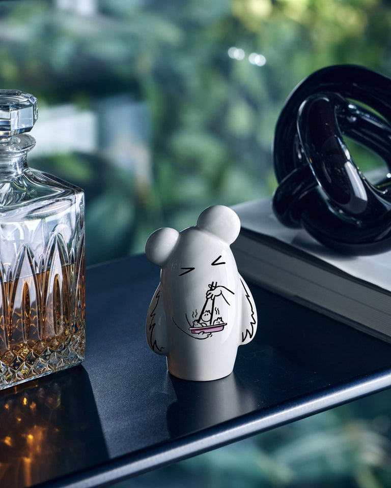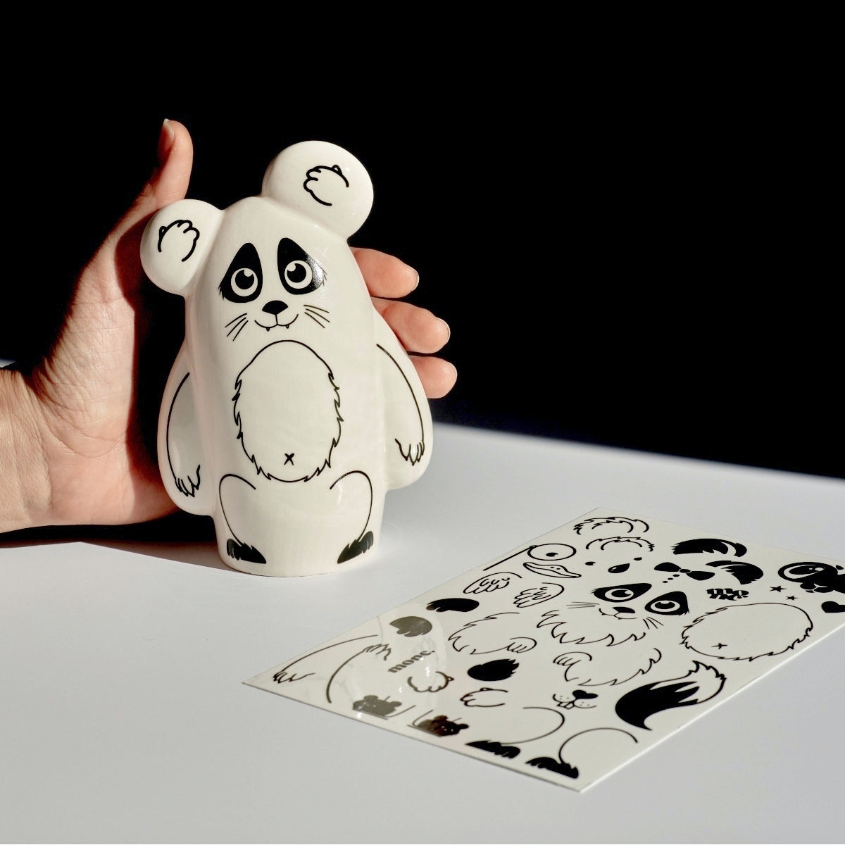 דמות קרמיקה לבנה ומבריקה בעיצוב סטודיו מונק.