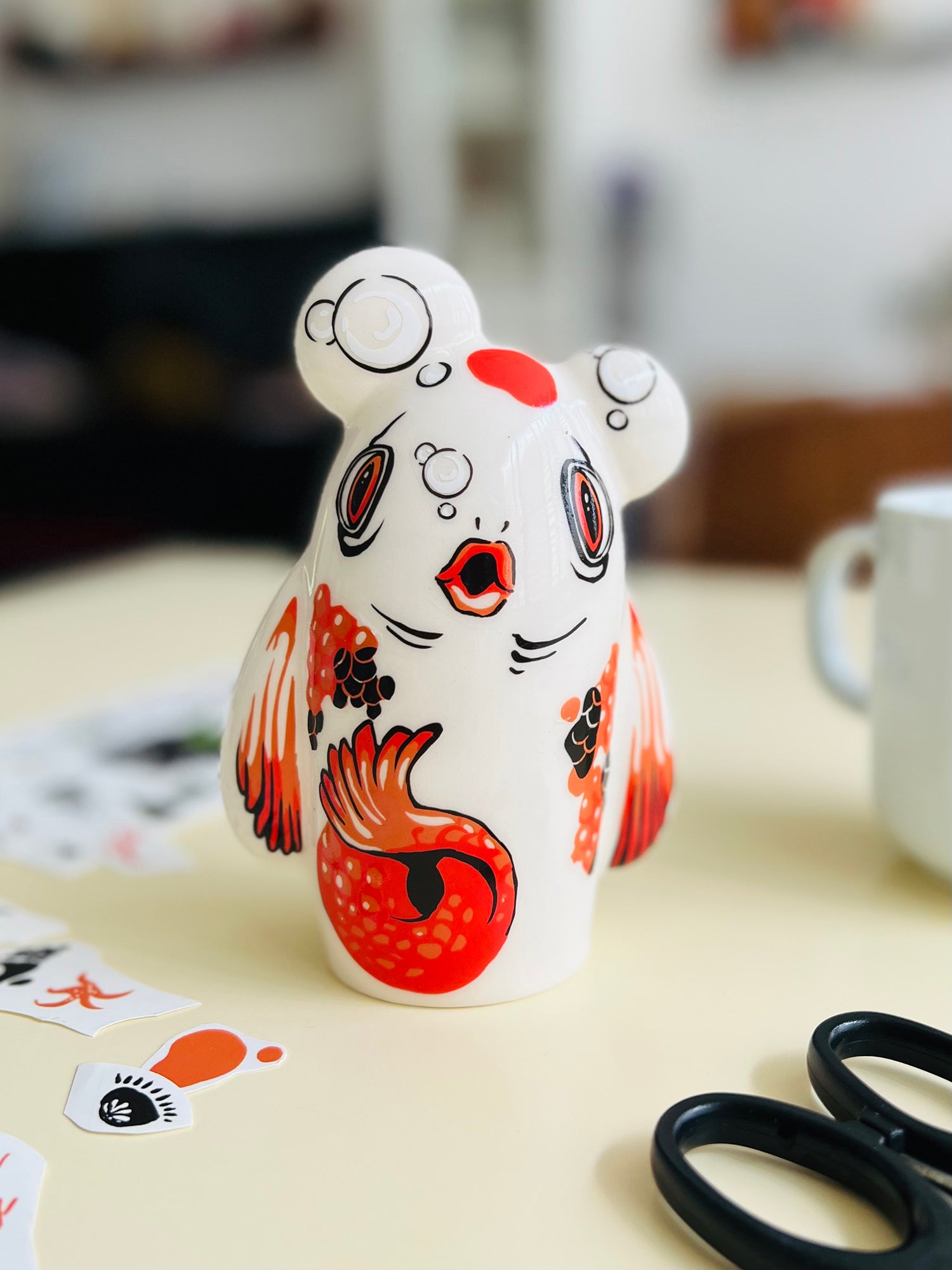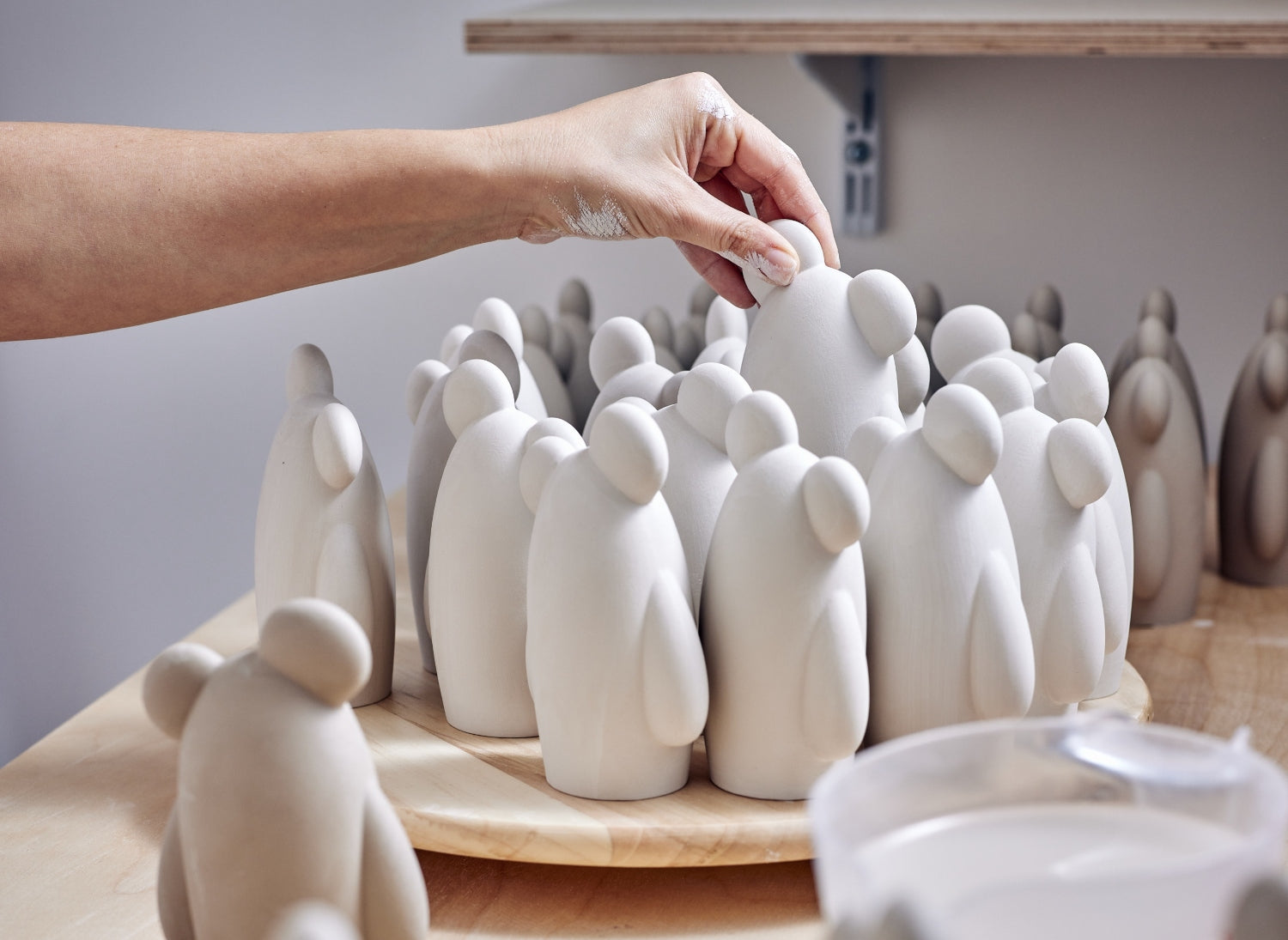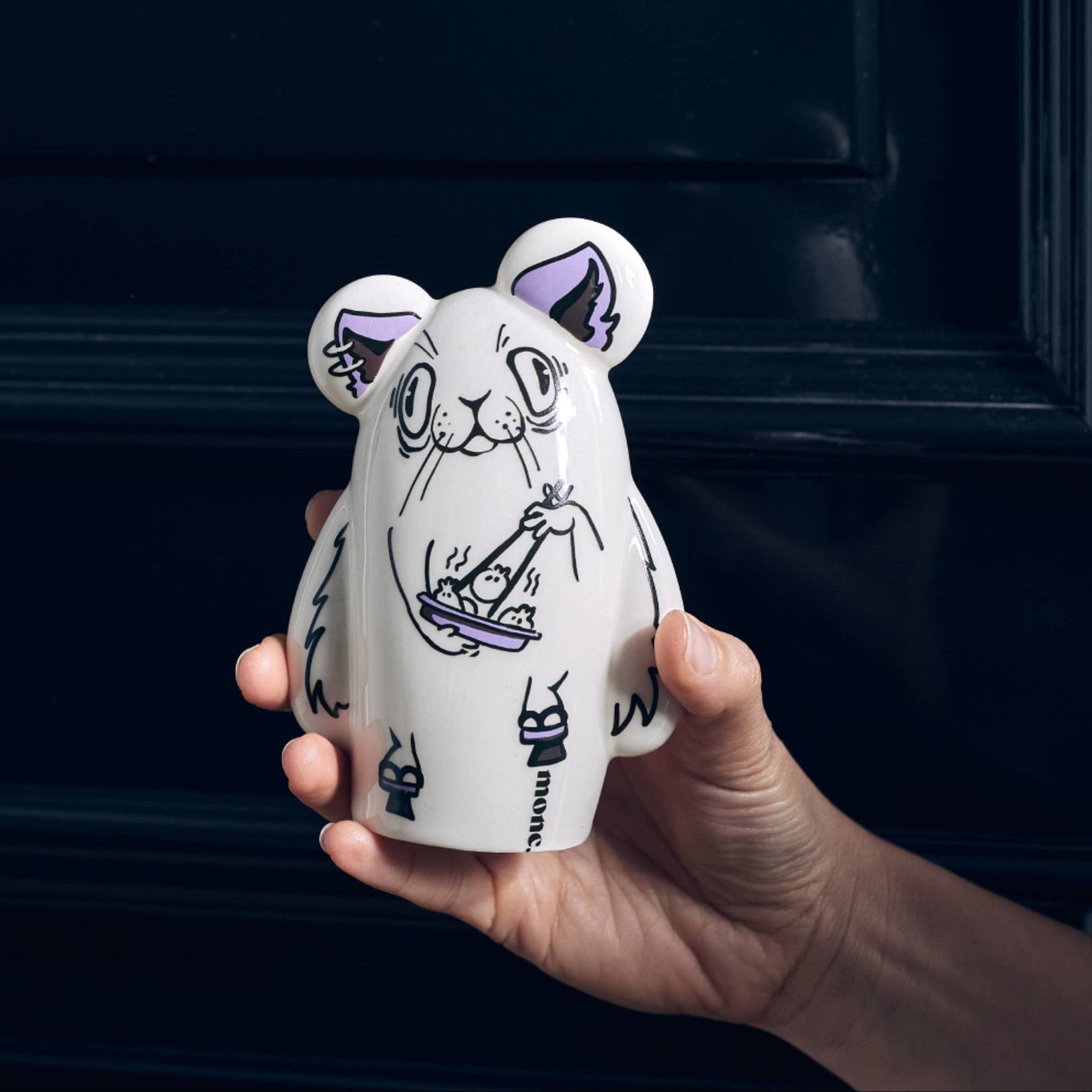 דמות קרמיקה לבנה ומבריקה בעיצוב סטודיו מונק.