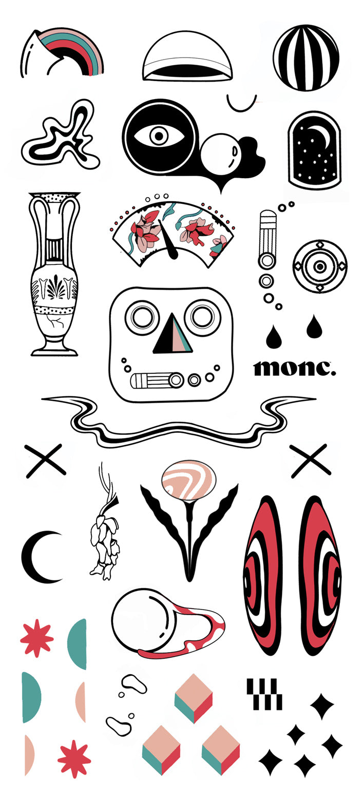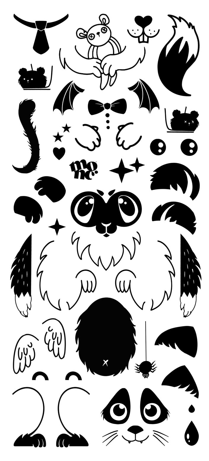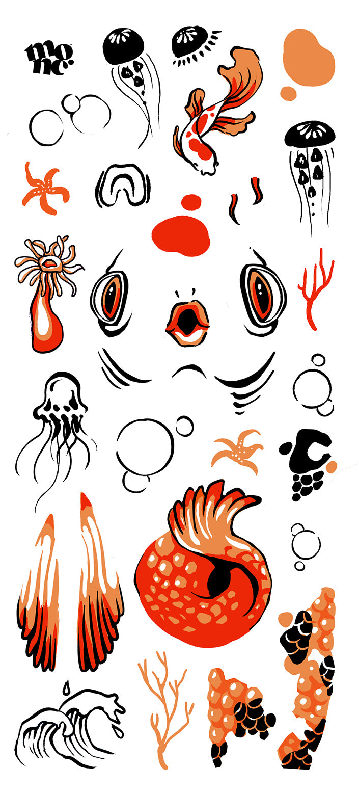 בחרו אחד מתוך חמשת דפי הקעקועים - Space, Fluffy Pups, Dark, Koi, Japanese Robot