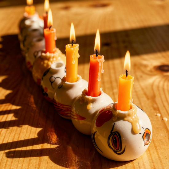 זוהי חנוכיית הזחל שלנו, עשויה קרמיקה ביציקה ידנית מוקפדת. מיוצרת על ידנו בבית המלאכה של מונק. את החנוכיה אפשר לעצב ולעטר עם הקעקועים המיוחדים שלנו, החנוכיה עמידה ושימושית, ניתן לשטוף אותה ולקלף ממנה שאריות שעווה. הקעקועים עמידים יותר לאחר אפייה בתנור אפיה ביתי - 120 מעלות לחצי שעה.